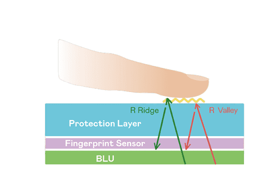 超高像素密度光学感测技术能精准判定手指反射的极微弱光讯号,,即使细致指纹也可清晰辨识,,并可透过手指脉搏造成的细微灰阶变化侦测心跳,,,,让身分验证更精确。。。TFT 架构优化可降低讯号传输干扰,,,达到光感测器最佳讯杂比(讯号/杂讯的比例)。。。。透过增强光讯号接收强度、、、优化感测器电路及导入特殊光学膜材料,,,提高感测器敏度。。整合系统之指纹扫描装置可符合最高等级的FBI国际安全规范认证需求。。。。