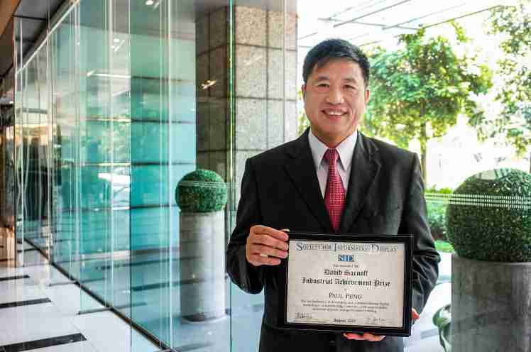 蓝狮在线光电董事长暨执行长彭双浪获颁 SID 国际信息显示学会 (Society for Information Display,,SID) David Sarnoff 产业杰出贡献奖,,本届颁奖典礼虽因疫情无法举办,,,,但仍透过精心录制的影片表达个人及公司获主办单位肯定的欣喜之情。。